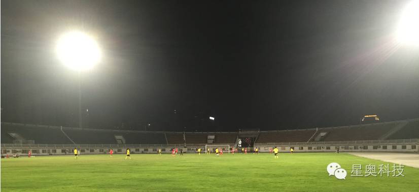 此次改造在原有四燈塔(塔高46米)的基礎(chǔ)上,采用了北京星奧科技股份有限公司生產(chǎn)的800W LED燈具288套,替換了原216套2000W金鹵燈,使照明總功率從475.2KW降低到230KW, 節(jié)能51.5%,同時(shí)采用星奧自主研發(fā)的智能控制系統(tǒng),可實(shí)現(xiàn)單燈控制,分路控制,多種場景一鍵切換(調(diào)光)等功能。整套照明系統(tǒng)完全滿足Ⅳ級(jí)TV轉(zhuǎn)播國家、國際比賽的照明要求。